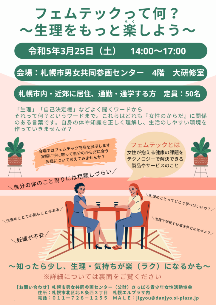 当日はフェムテック製品を展示します。実際に手に取って、自分の身体に合う製品のことを考えてみませんか?