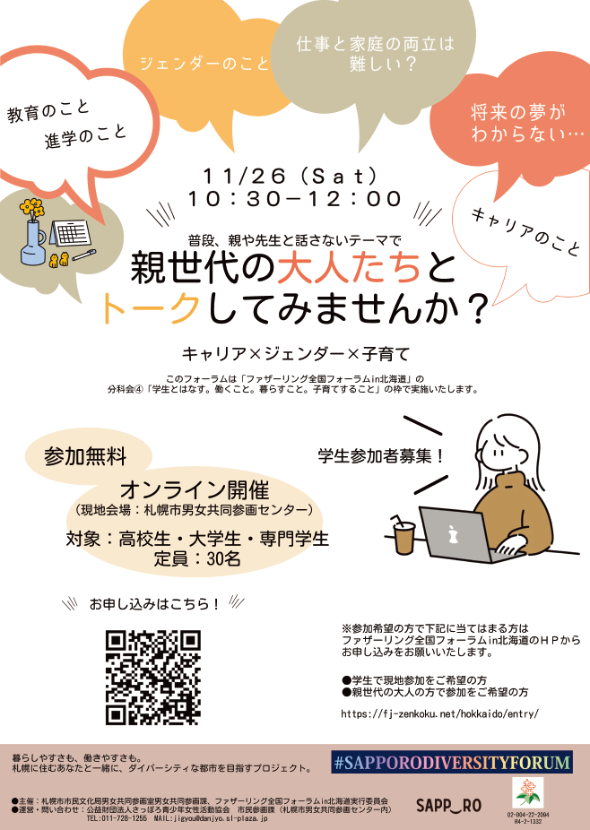 ・学生で現地参加をご希望の方(現地会場:札幌市男女共同参画センター)