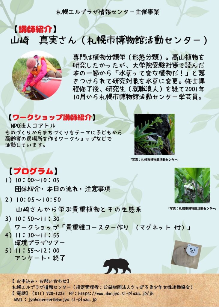 札幌エルプラザ情報センター主催事業「1日植物ハカセになろう!~貴重種コースター作成ワークショップと環境プラザ見学ツアー~」
